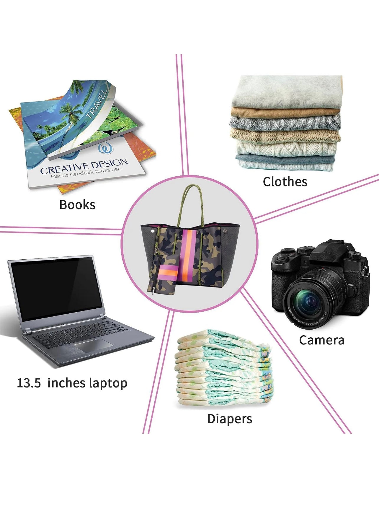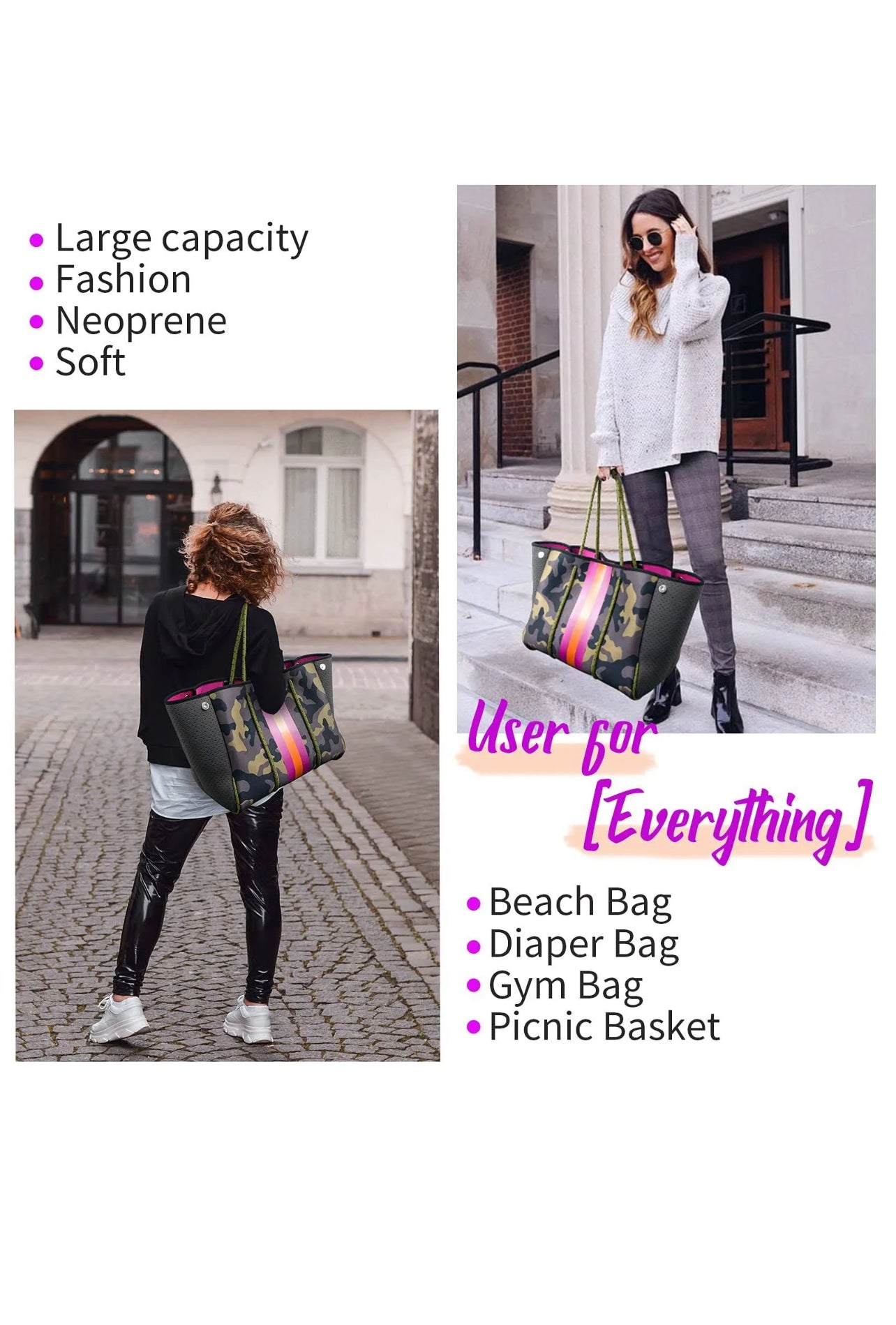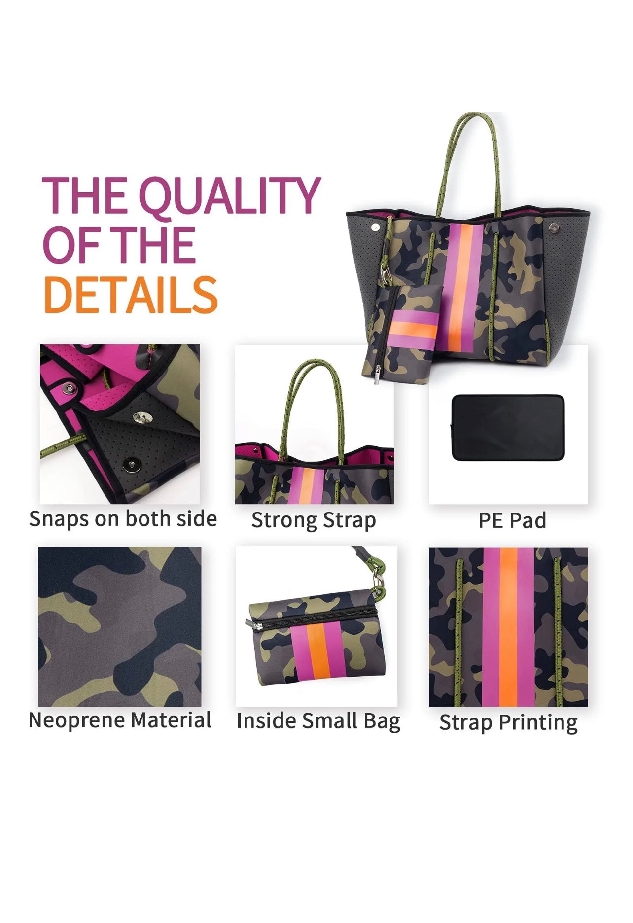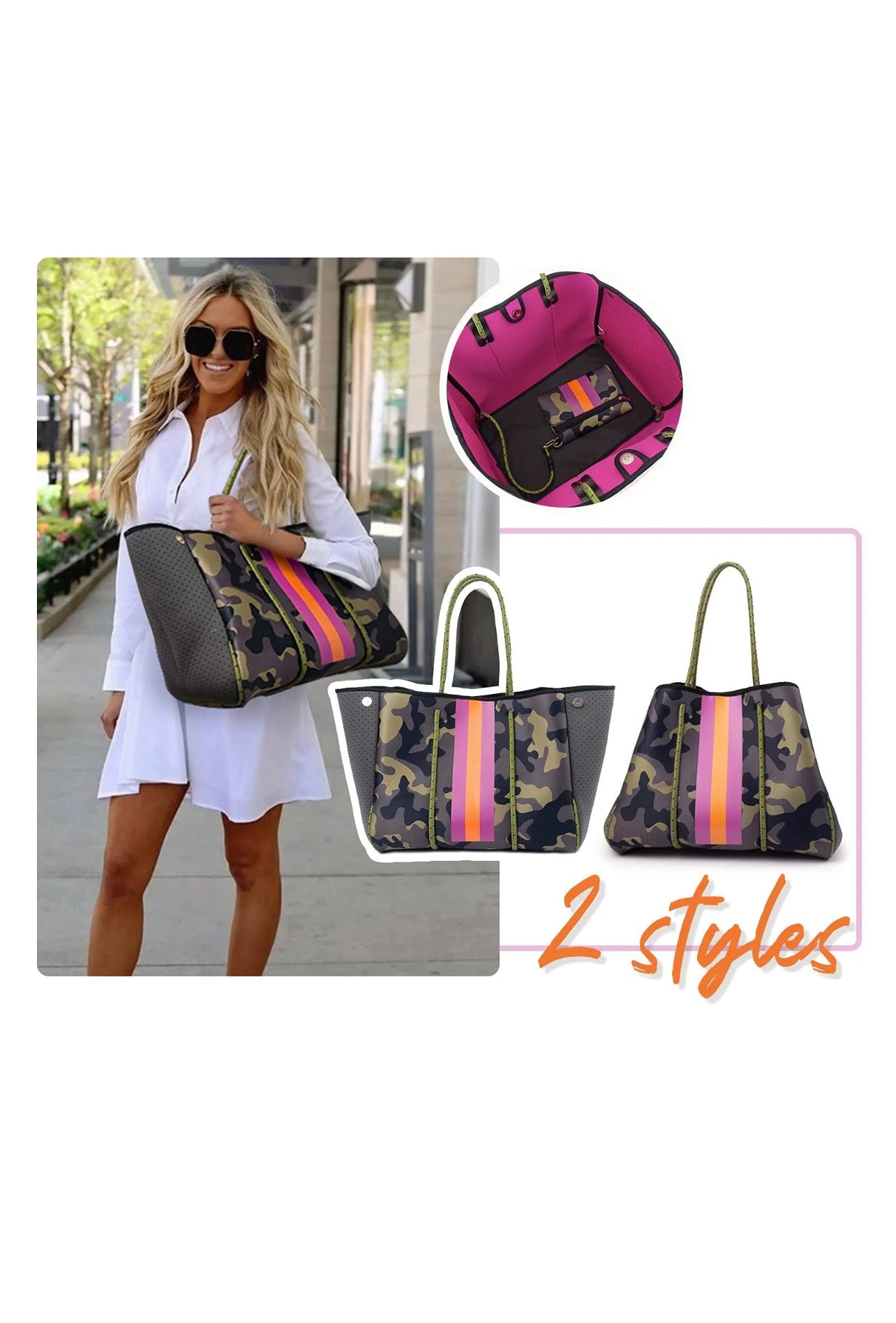 Camo and pink neoprene tote set