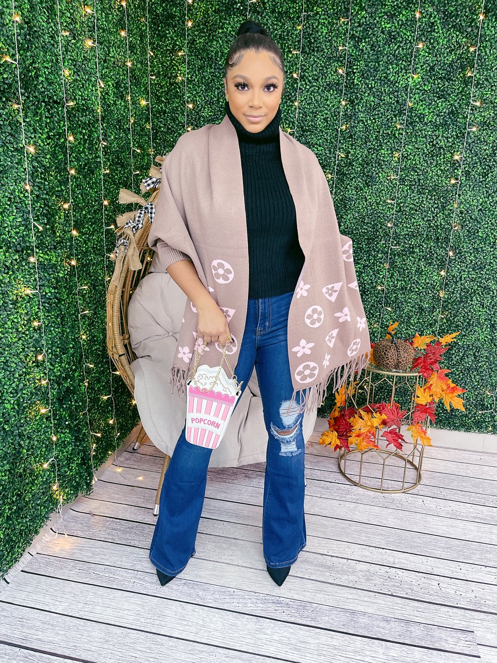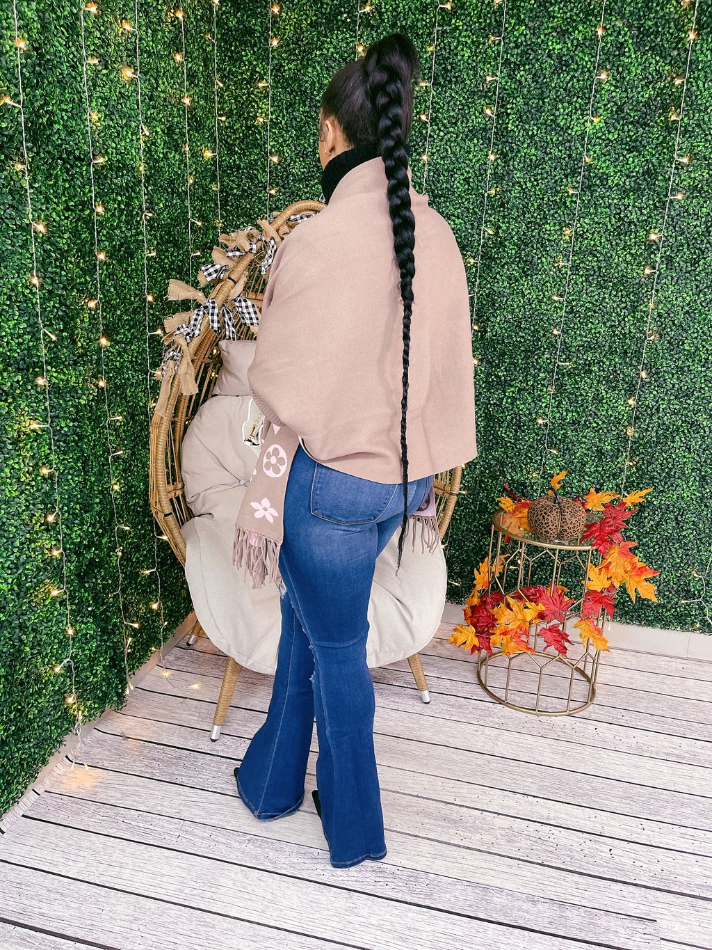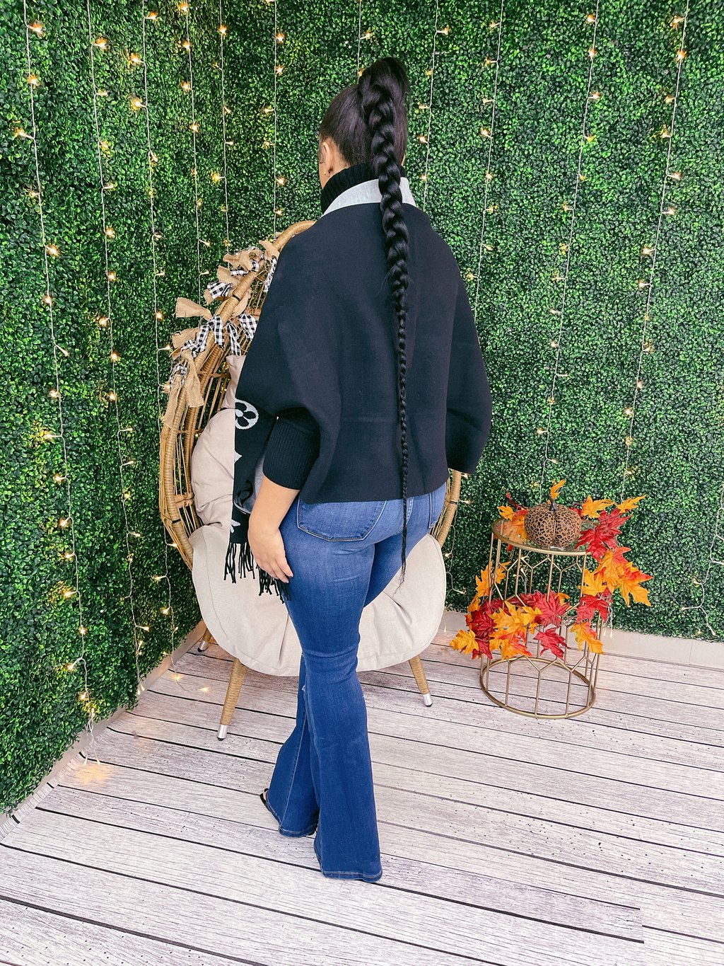Designer inspired sweater poncho. Wraps nicely and looks luxurious . One size fits most. Sleeves keeps poncho from fall off. 100% Acrylic